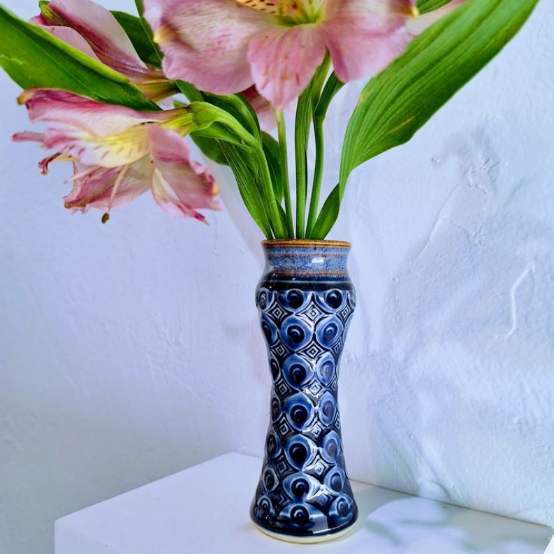 These delightful small vases bring a touch of handcrafted charm to any space. Each piece features a unique pattern of Kelsey’s own design, ensuring no two are alike and offering a touch of sophistication to any space.