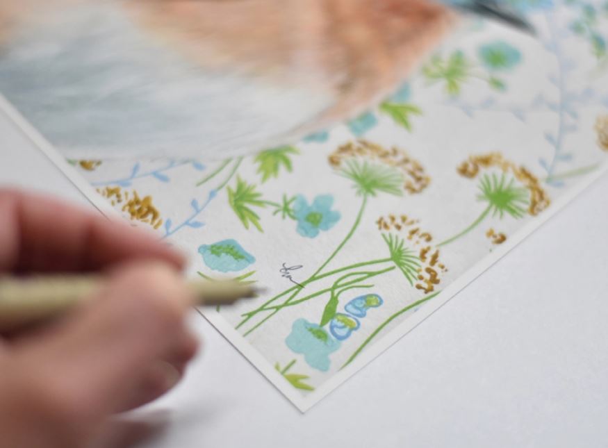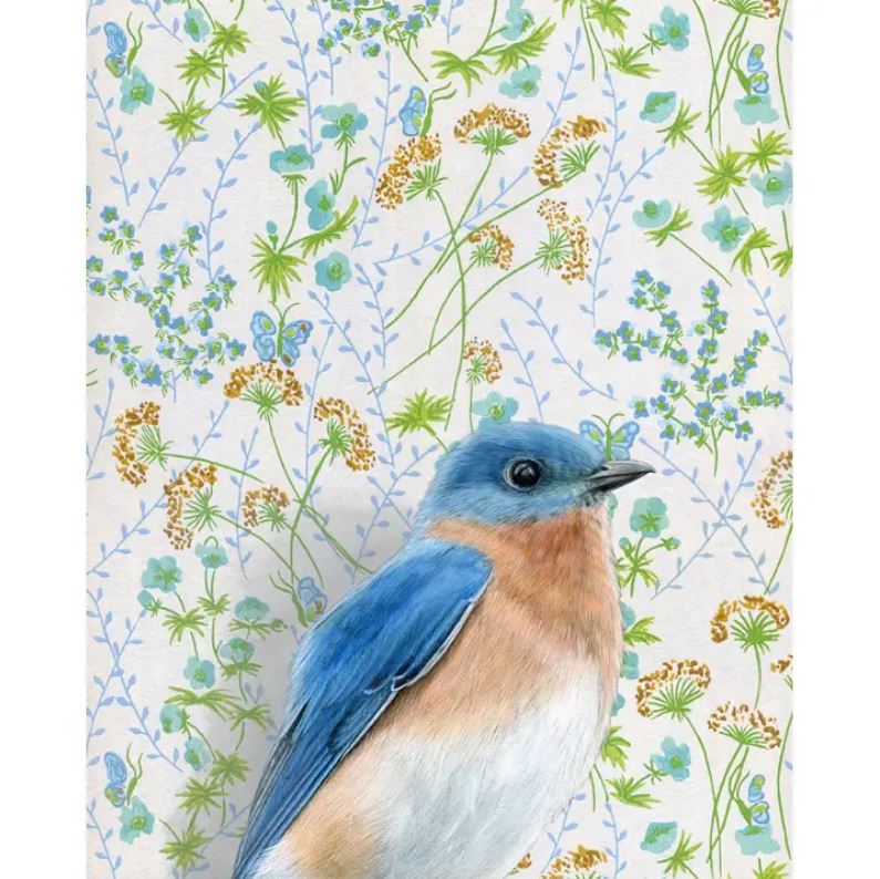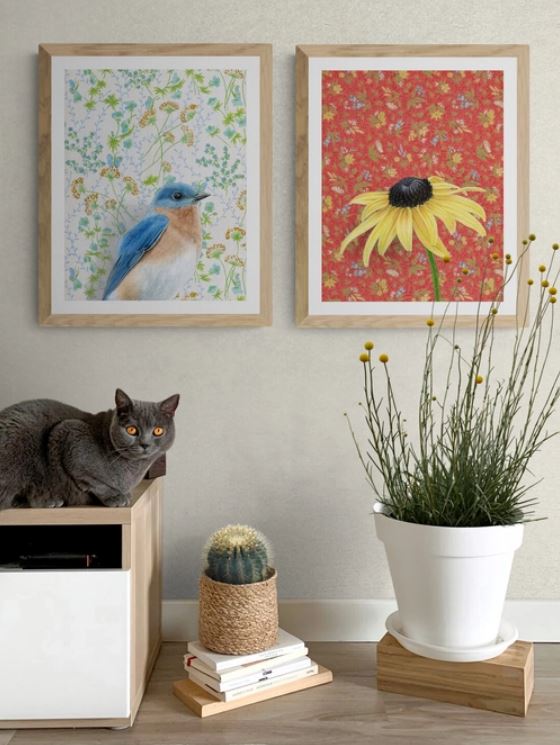 This fine art print features an image from an original oil painting on wallpaper by Emily Uchytil of Wild Wallflowers in Parkville, Maryland.