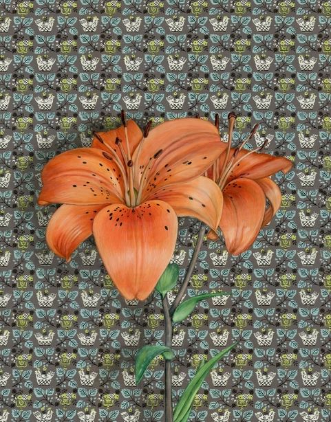 This fine art print features an image from an original oil painting on wallpaper by Emily Uchytil of Wild Wallflowers in Parkville, Maryland.