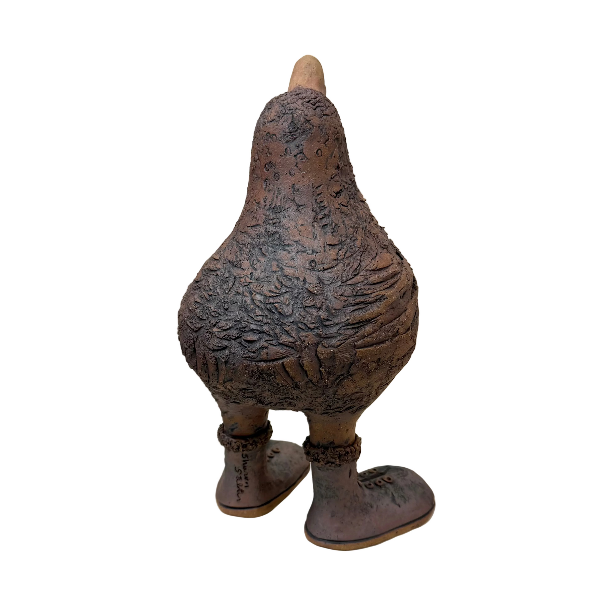 "Each sculpture is an original design. My work is hand built hollow from slabs and coils of stoneware clay. Each piece is kiln fired twice. An iron oxide wash between firings gives each piece its color. Sculptures can be enjoyed both indoors and outdoors in moderate weather."