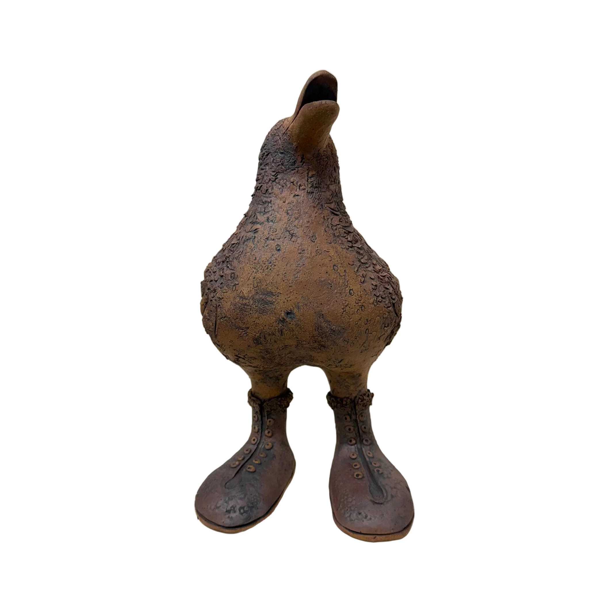 This sweet birdie was hand-built with stoneware clay. It measures approximately 11.75" tall.