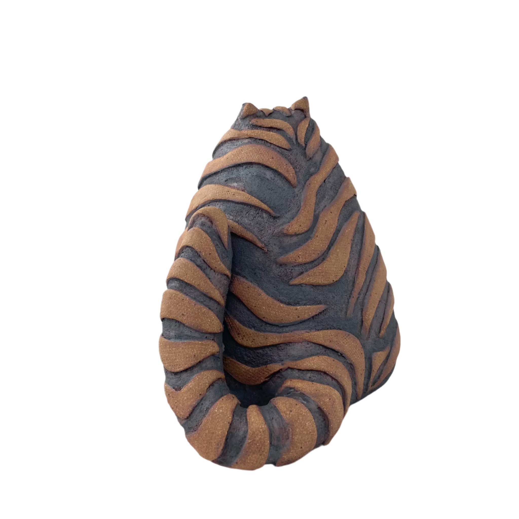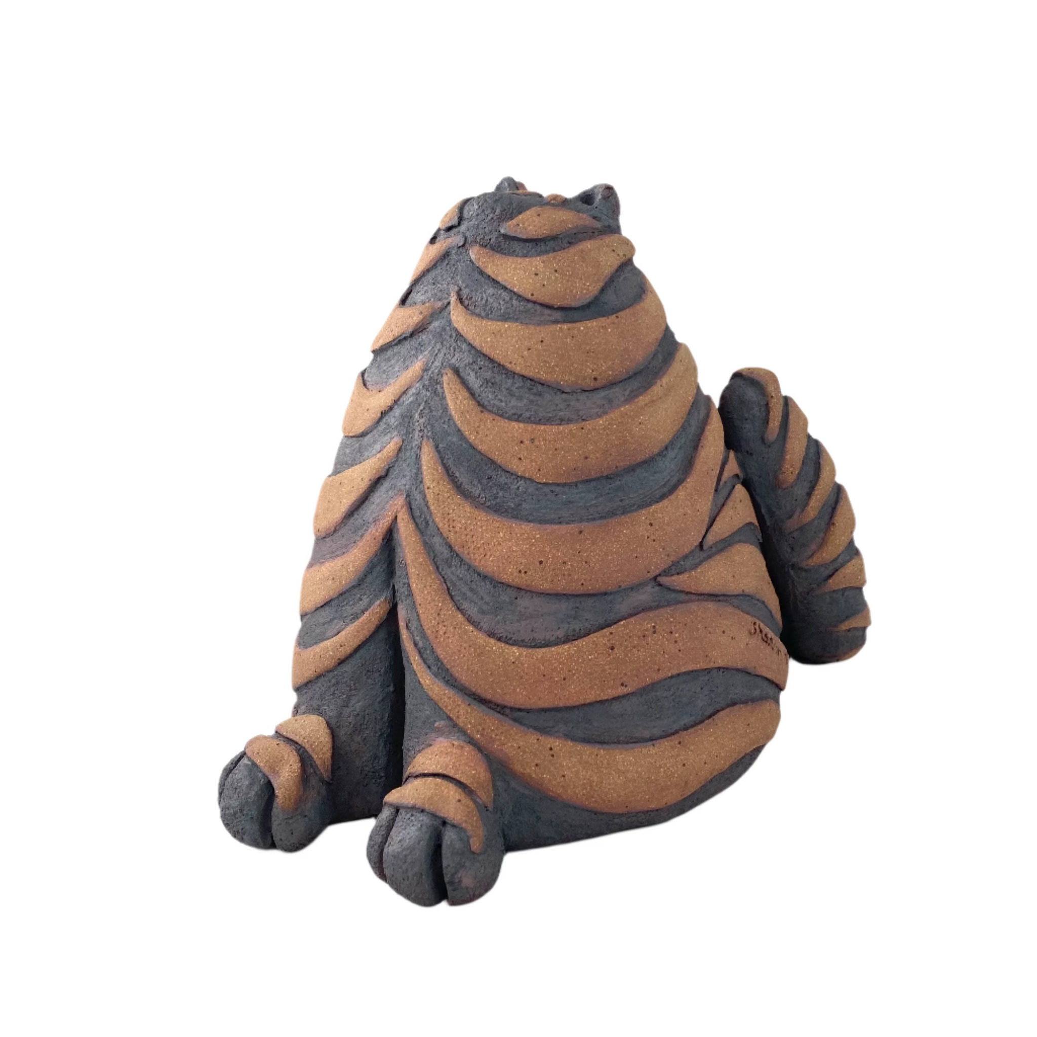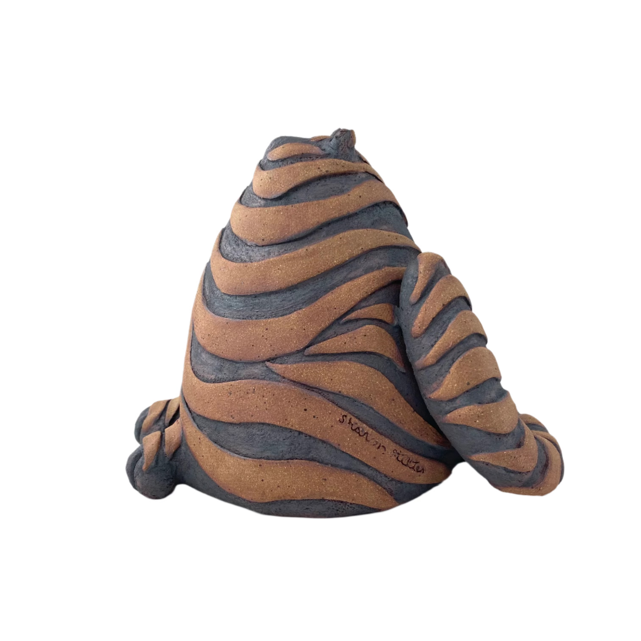 Each sculpture is an original design. My work is hand built hollow from slabs and coils of stoneware clay. Each piece is kiln fired twice. An iron oxide wash between firings gives each piece its color. Sculptures can be enjoyed both indoors and outdoors in moderate weather.