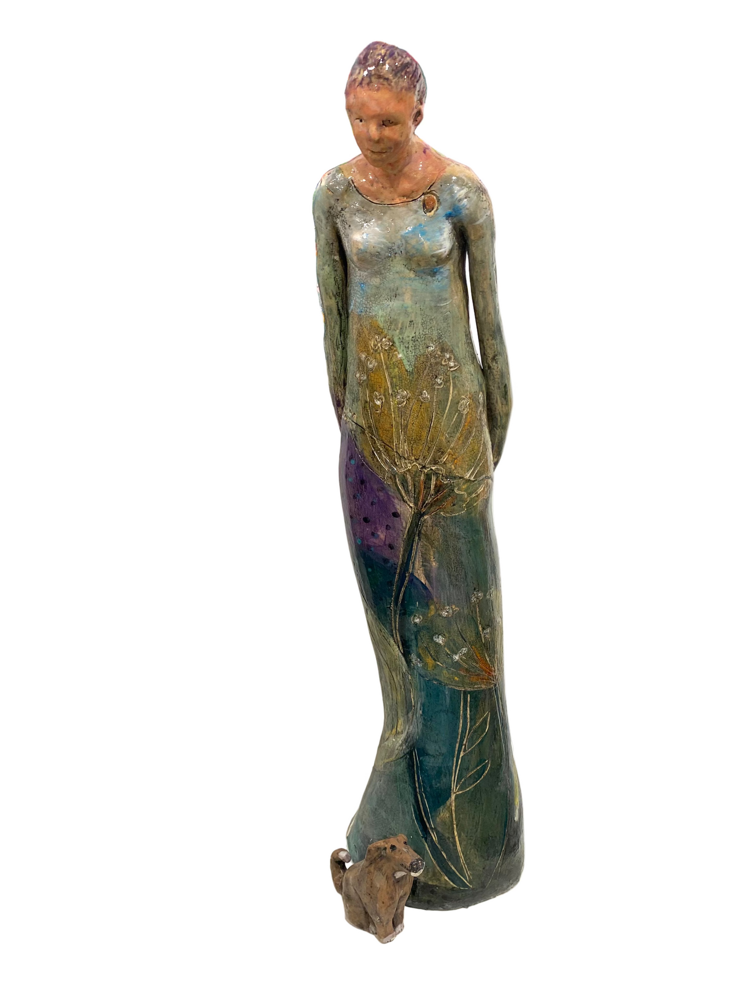 The clay sculptures Linda Lewis creates deal with common themes between people: love, parenthood, family and the search for fulfillment. Instead of focusing on the figure she tells the story through the use of facial expressions, the tilt of the head, the shifting of the stance, as well as the texture of the surface & the use of symbols. Titles are added to each piece to support the narrative of each piece: anything from 'The harassed housewife' to 'Daydreaming' to 'Just between us'. Her inspiration comes not only from her own life but from the stories of those she listens to in her everyday life.