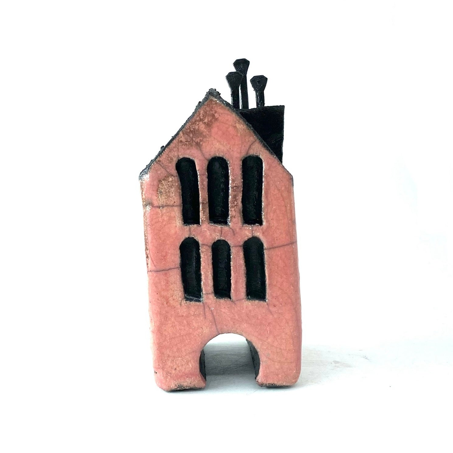 "We moved to Galena in 2014, set up another pottery studio and once again I have had fun spending time in the studio and playing around with clay. I started making my little raku-fired houses which were a collaborative effort with Richard as he did the firing. The clay is extruded and then each house is made by hand. The house form is fun for me and I enjoy each creation. I don’t consider myself an artist but someone who had the good fortune to be married to a guy who encouraged me to be in the studio and get my hands dirty."