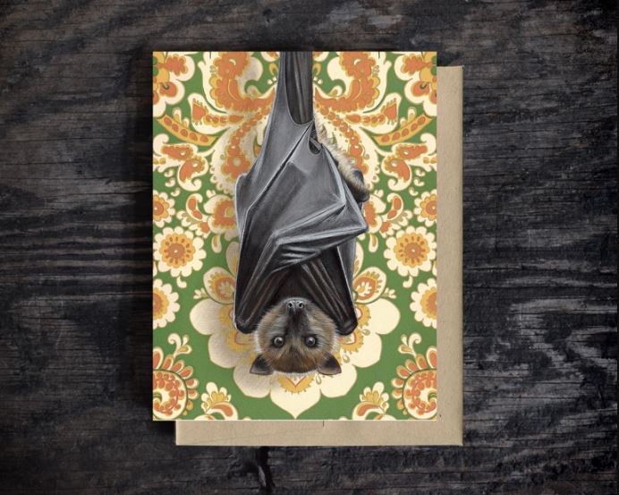 Flying Fox Bat Blank Greeting Card by Emily Uchytil