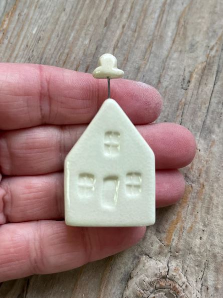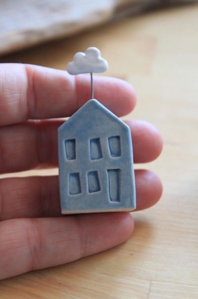 These miniature pottery houses feature a little cloud embellishment. These make a great addition to your fairy garden or as a decorative accent to your kitchen window sill.