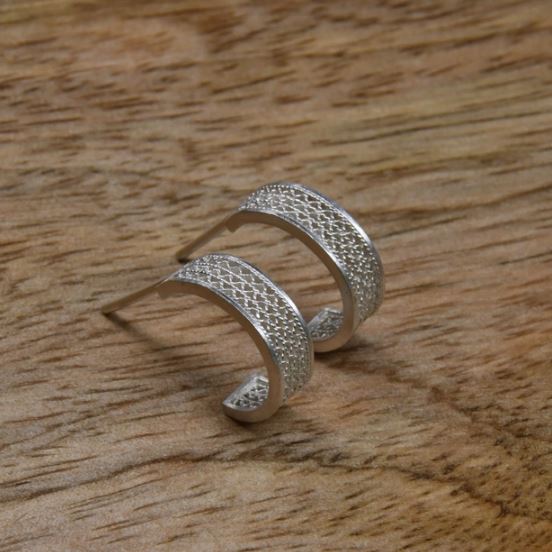 Tiny Silver Filigree Hoop Earrings by Olmox Fine Filigree Jewelry
