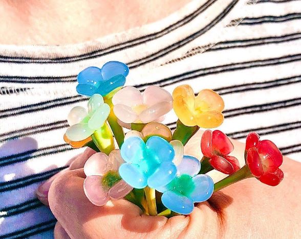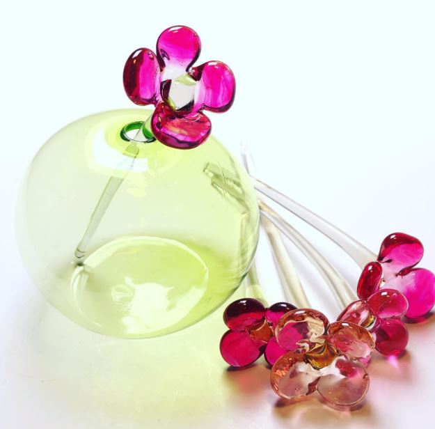 Stemmed glass flowers are a cheerful addition to our vases whether a happy trio or perky single bloom.