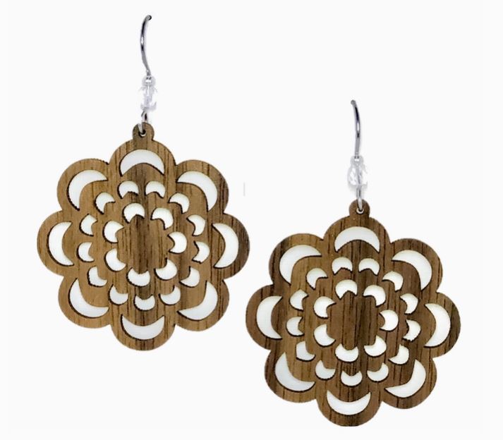 Small Radiating Flower Lasercut Wood Earrings by Woodcutts
