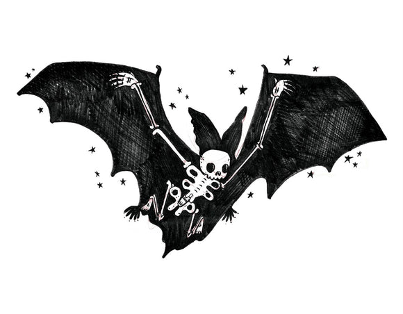 A lot of my work is highly graphic, uses bold lines and colors, and I love to use skeletons to remind humans how we are connected to other-than-human beings.