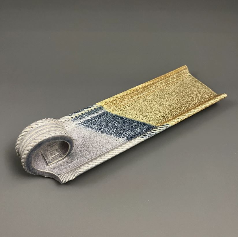 Macone Clay is the work of Michael, his two sons Miles and Clayton, and his son in law, Dan Temple. "We approach clay much like paper or canvas. To us, the pottery is just a function. The shapes and glaze effects are always secondary to the images and textures that we draw, engrave, then stamp into the clay." They are grateful to make a living doing what they love.