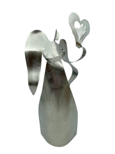 This self-standing stainless steel sculpture is handmade by Gail Chavenelle of Dubuque, Iowa.