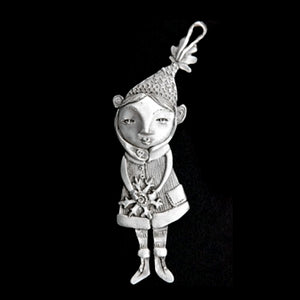 This cast pewter ornament was made by Leandra Drumm in Akron, Ohio.