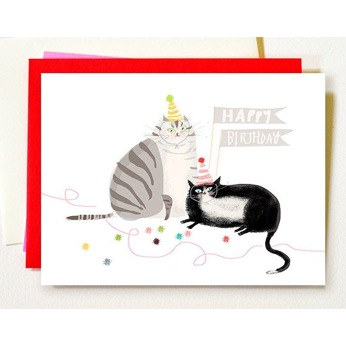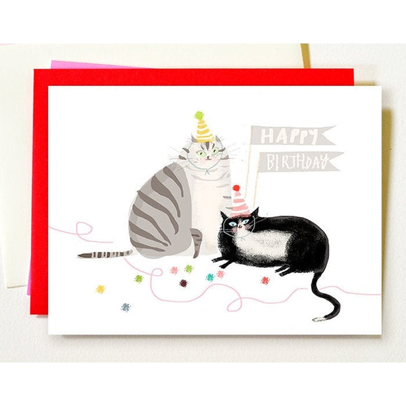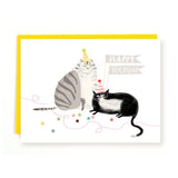 Birthday Grey and Tux Cat Greeting Card by Jamie Shelman