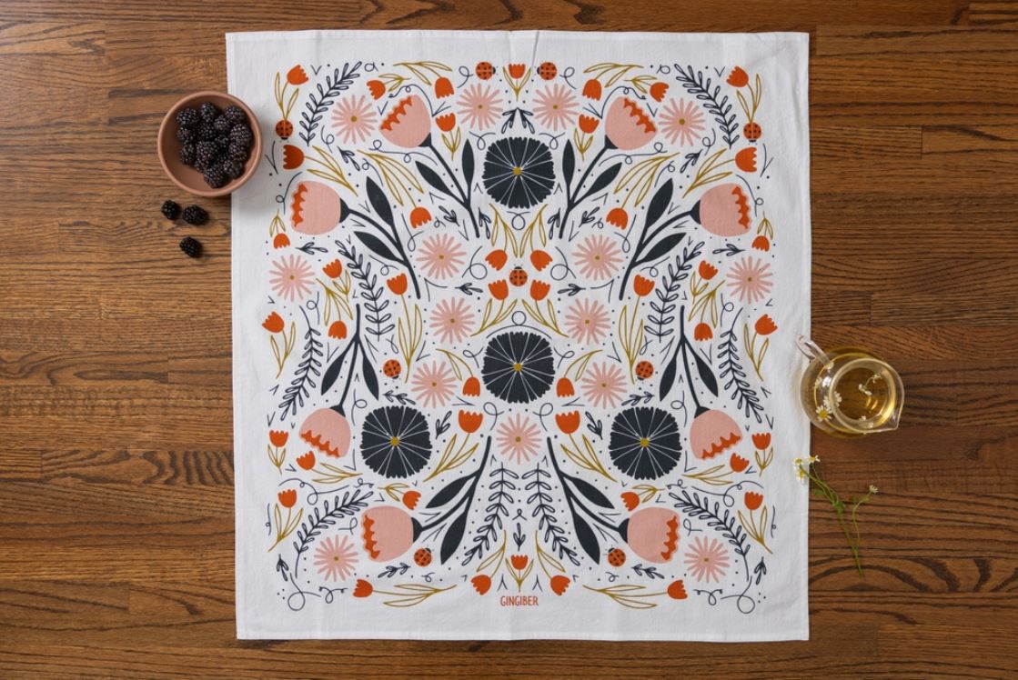 Brighten up your kitchen with a high quality tea towel featuring beautifully screen-printed Gingiber designs! Our oversized flour sack cotton tea towels are both absorbent and beautiful.