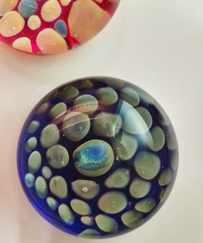 I’ve tried other career paths. I studied painting, taught art in a juvenile jail, worked on a fishing boat, and got a J.D., but I kept returning to glass. I love turning solid glass into a liquid and back again and experimenting with new ways of adding color, shaping glass, and pushing the boundaries of size for lamp-working. As a maker, I aim to make colorful, playful work that you will want to hang in your windows, decorate your house with, drink your whiskey from, and give to your mom.