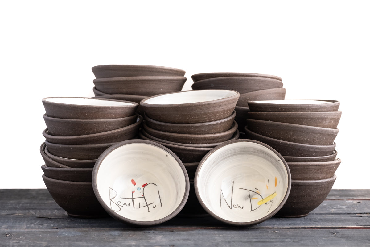 Each piece is wheel-thrown, hand inscribed and painted by the artist.