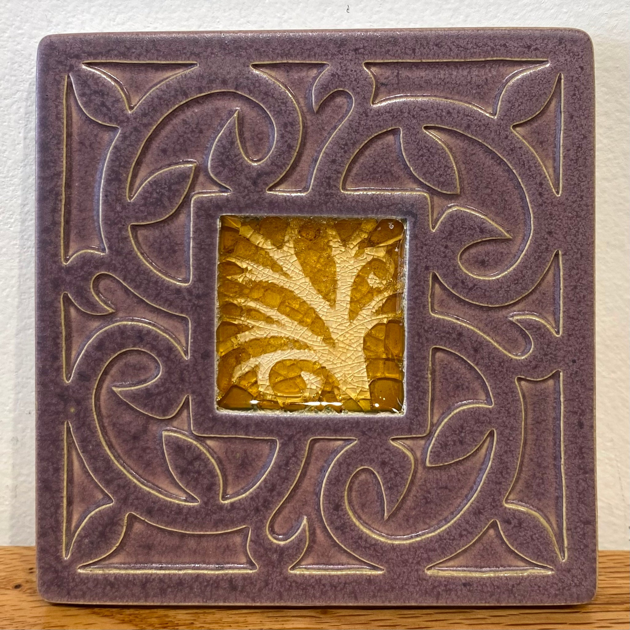 This handmade coaster with crackle glass is approximately 4" long x 4" wide and has rubber pads on the back.