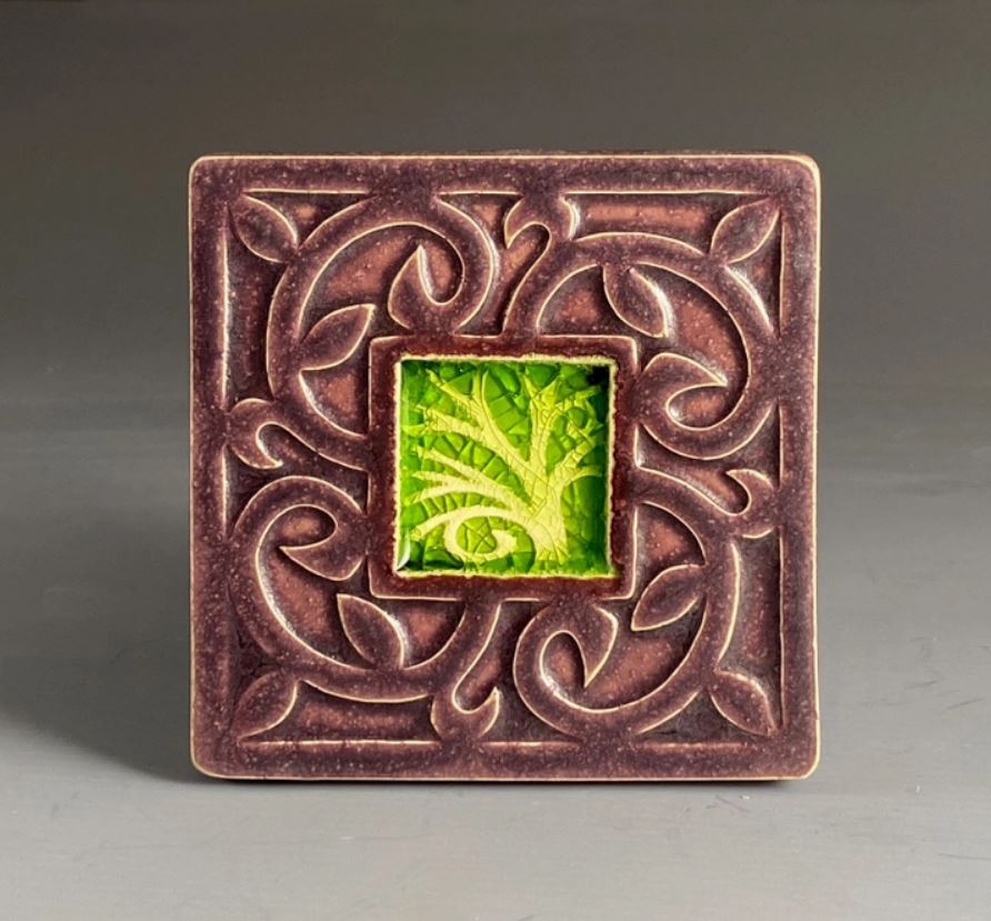 Macone Clay is the work of Michael, his two sons Miles and Clayton, and his son in law, Dan Temple. "We approach clay much like paper or canvas. To us, the pottery is just a function. The shapes and glaze effects are always secondary to the images and textures that we draw, engrave, then stamp into the clay." They are grateful to make a living doing what they love.
