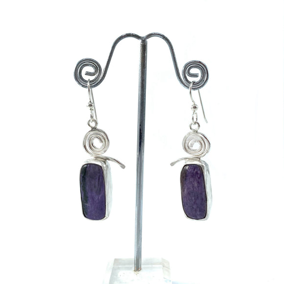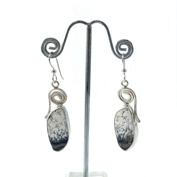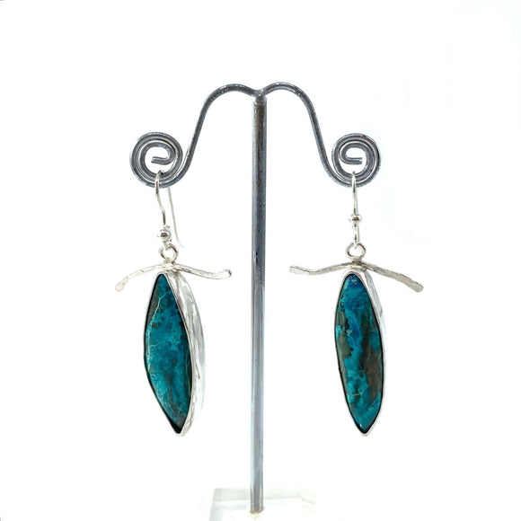 These earrings are handcrafted from furniture-grade veneers with silver foil accents. These woods include Cherry, Maple, or Walnut. All of the wood is harvested from sustainable tree farms. They are made with a stainless steel earring wires. They measure approximately 1" long.