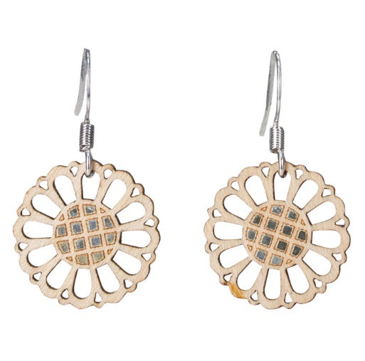 Twig Sunflower Lasercut Wood Earrings by Woodcutts