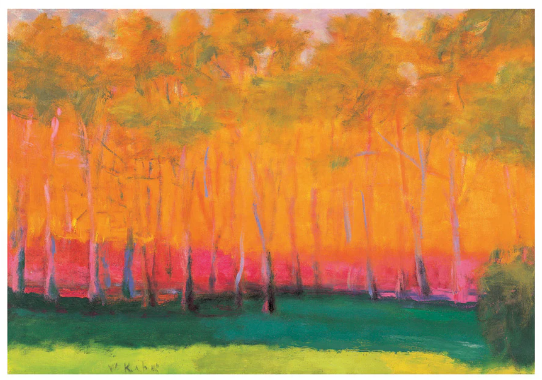 In his long, remarkable career, Wolf Kahn (American, b. Germany, 1927–2020) created hundreds of landscape paintings that effuse glowing color, inviting us to experience light and trees, barns and rivers in new ways. Kahn was a maverick in how he filled the canvas. (He once said, “I enjoy making something austere and dramatic out of the color pink.”) His unique approach of employing spontaneity while creating representational scenes produced a body of work that is as pleasurable as it is deeply moving. Among his many accolades are a Fulbright Scholarship, a Guggenheim Fellowship, and US State Department International Medal of Art. His work is regularly exhibited at galleries and museums across North America and can be found in the collections of many leading institutions.